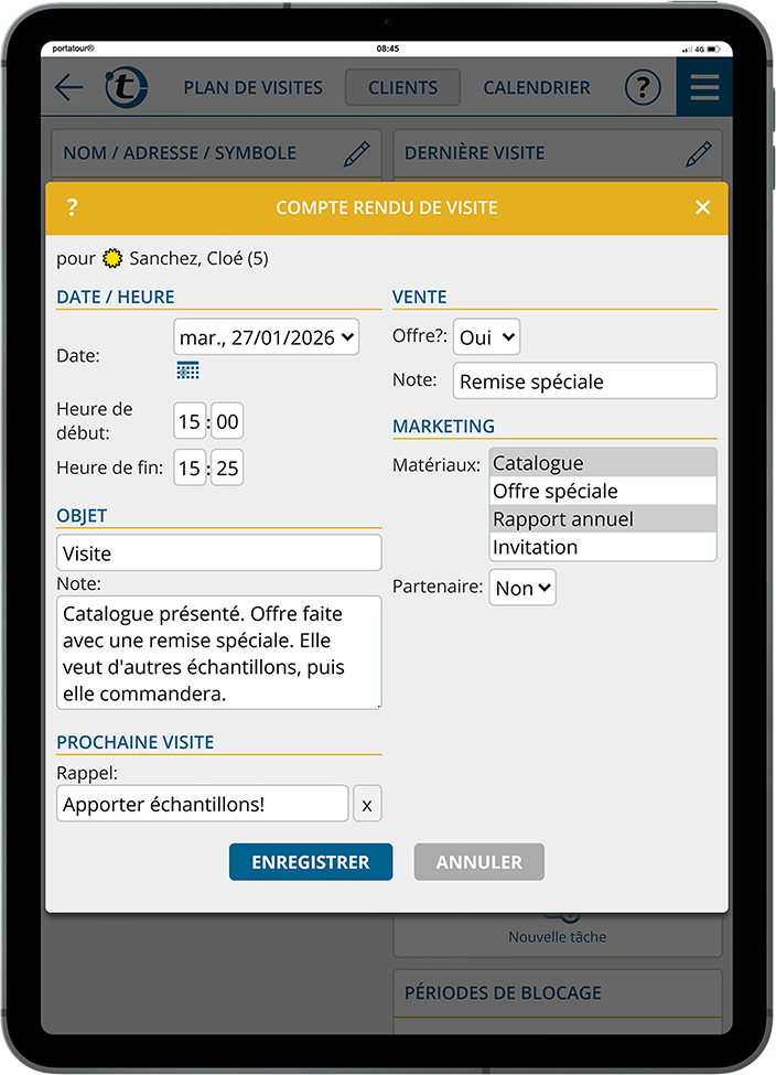 - Chaque interaction client est documentée de manière efficace, immédiatement après le rendez-vous commercial.