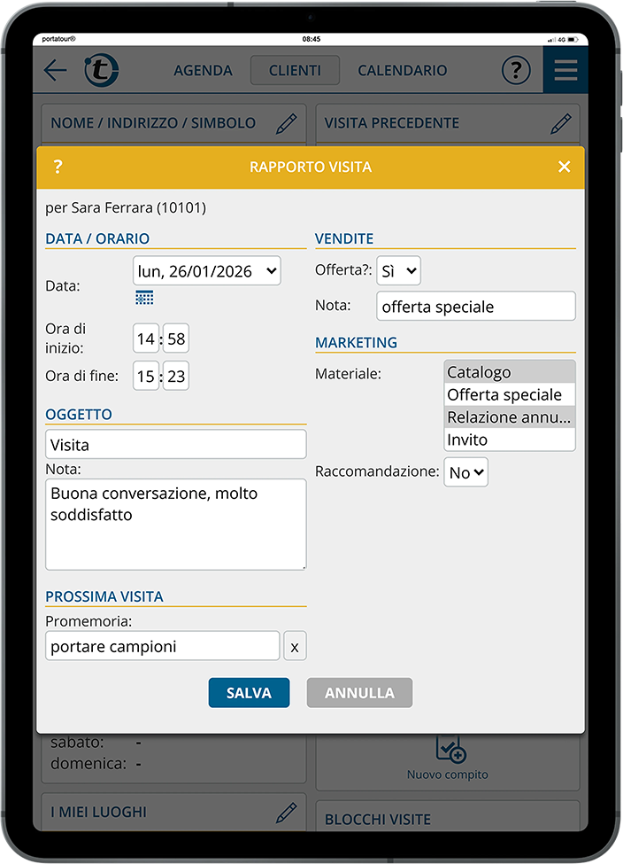 • Ogni interazione con il cliente viene documentata in modo completo subito dopo l’appuntamento di vendita.