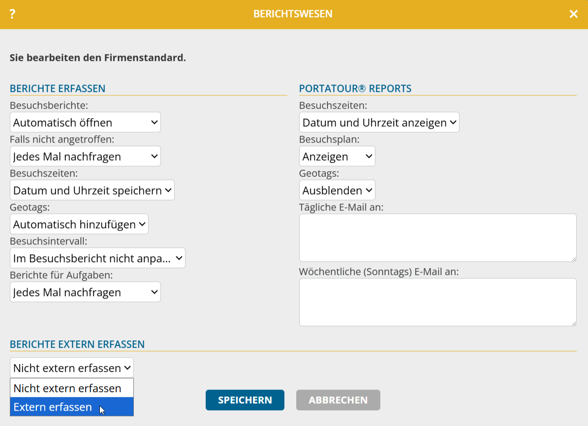 - Stellen Sie „Berichte extern erfassen“ auf „Extern erfassen“.