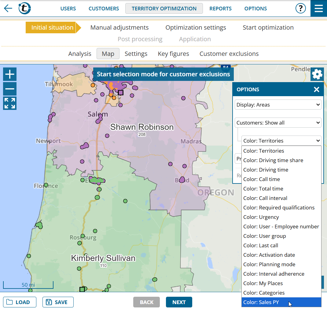 Territory optimization : Map with additional coloring options