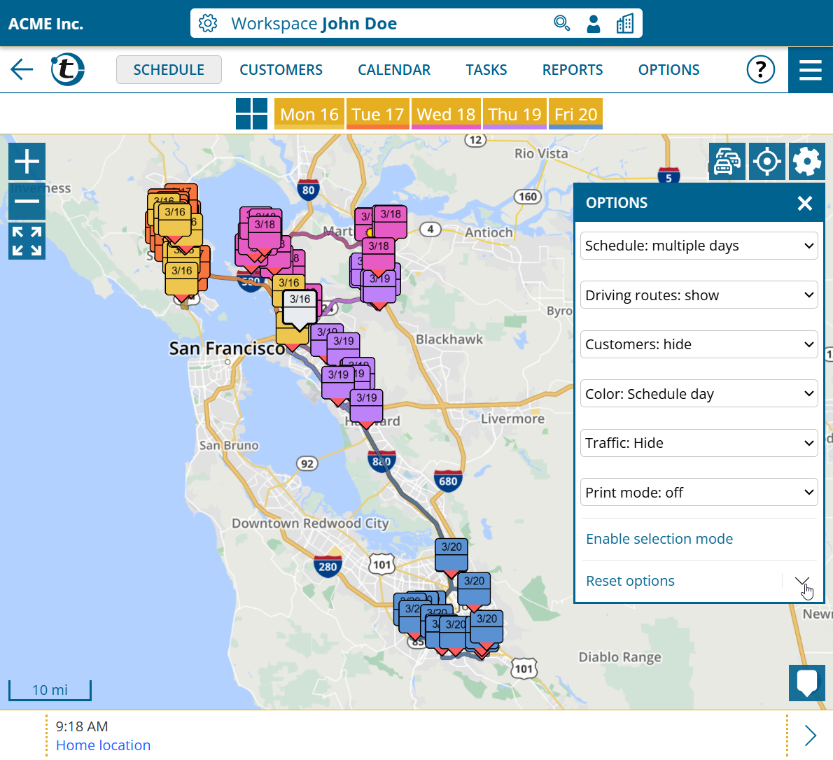 The standard is saved separately for the customer map, schedule map and the map in the territory optimization. The selection of the key figures to be displayed in the territory areas selection is also saved in the territory optimization.