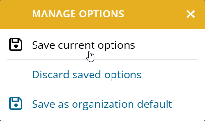 As an administrator, you can also use “Save as organization default” to set the current options as the default for users who have not saved their own default.