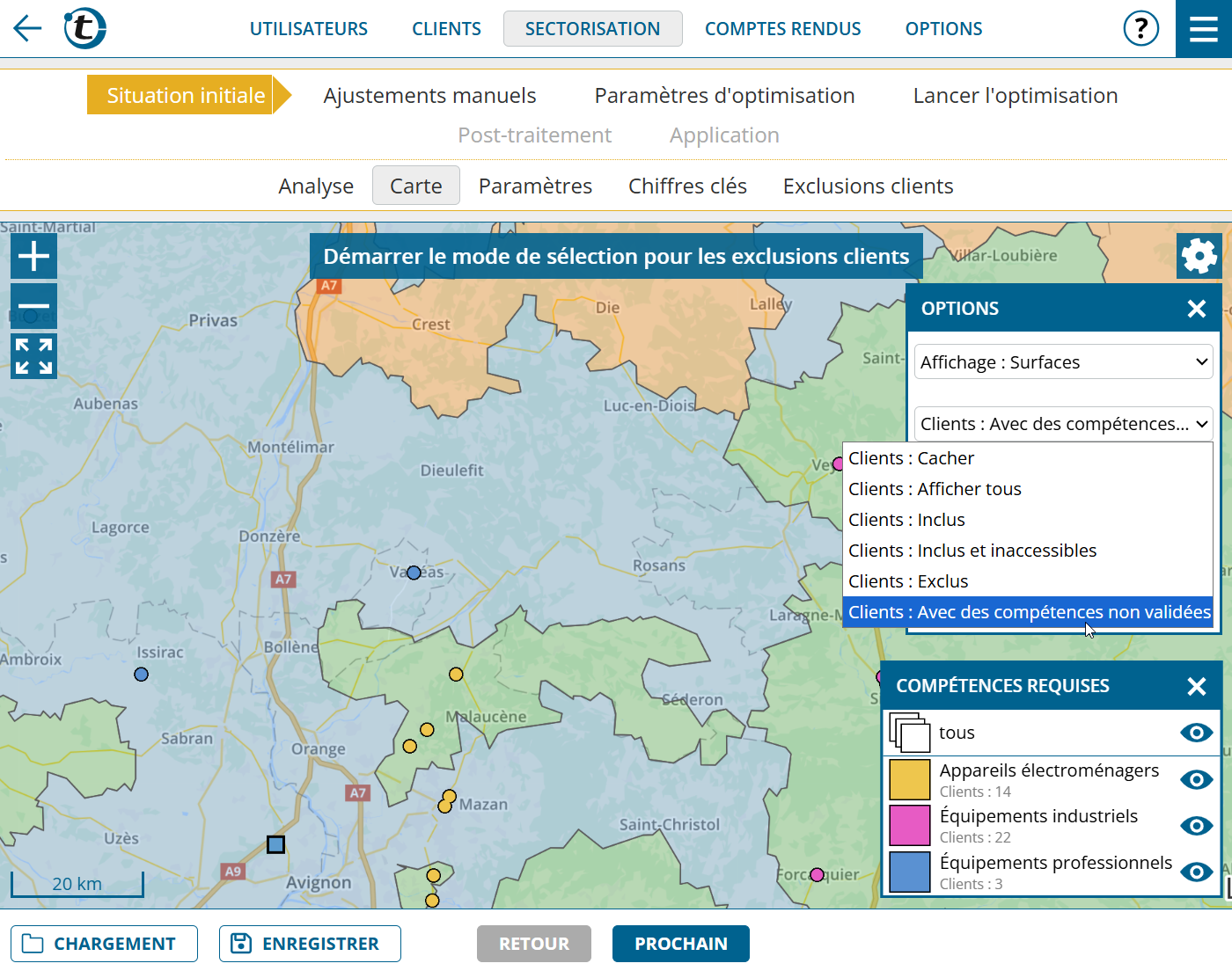 Remarque : Si vous souhaitez délibérément effectuer l’optimisation sans tenir compte des compétences, réglez « Paramètres d’optimisation > Général > Compétences pour l’affectation des secteurs » sur « Ignorer ».