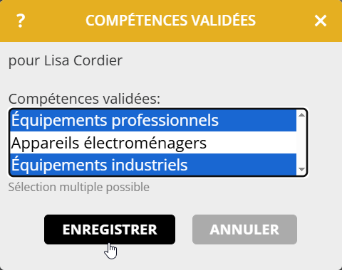 - Sélectionnez les compétences validées