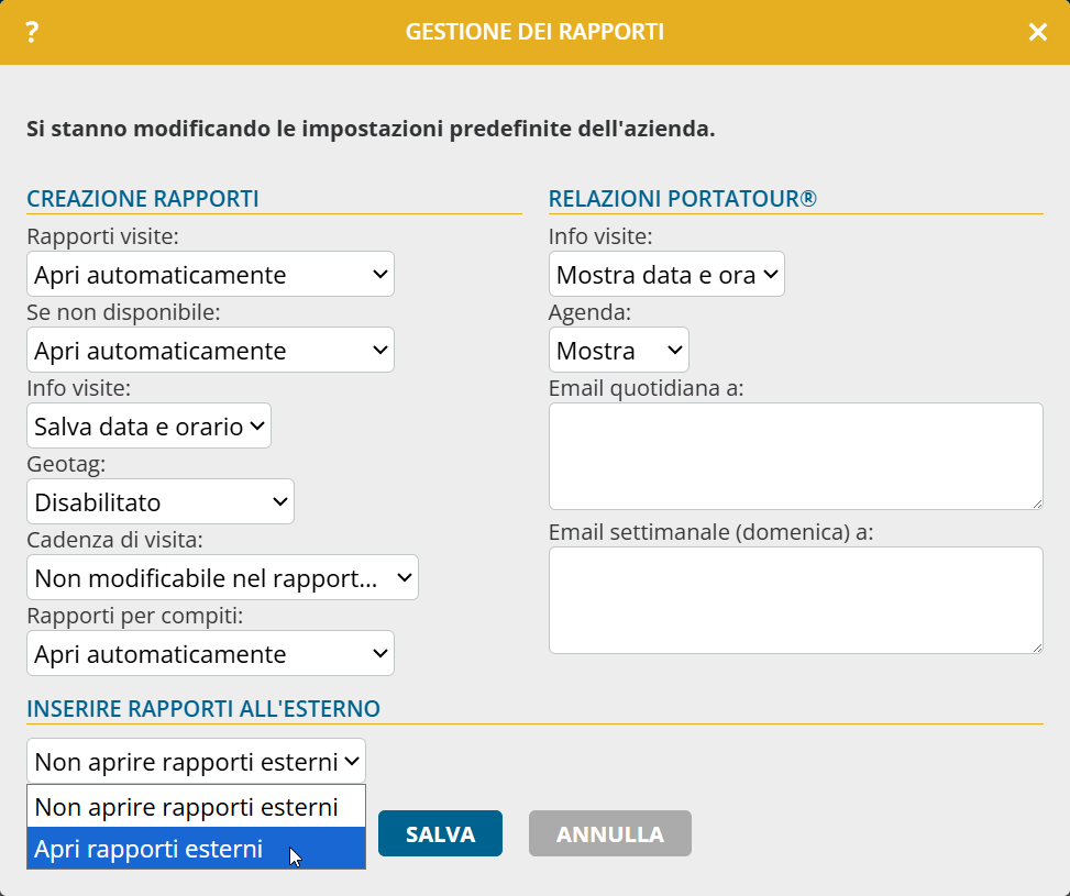 Nota: questa funzione non è ancora disponibile se portatour® è collegato a Dynamics CRM come sistema sorgente di dati.