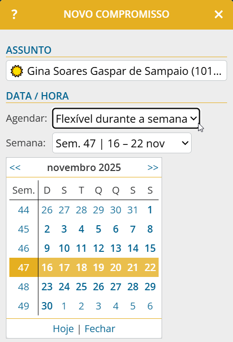 Compromissos flexível durante a semana
