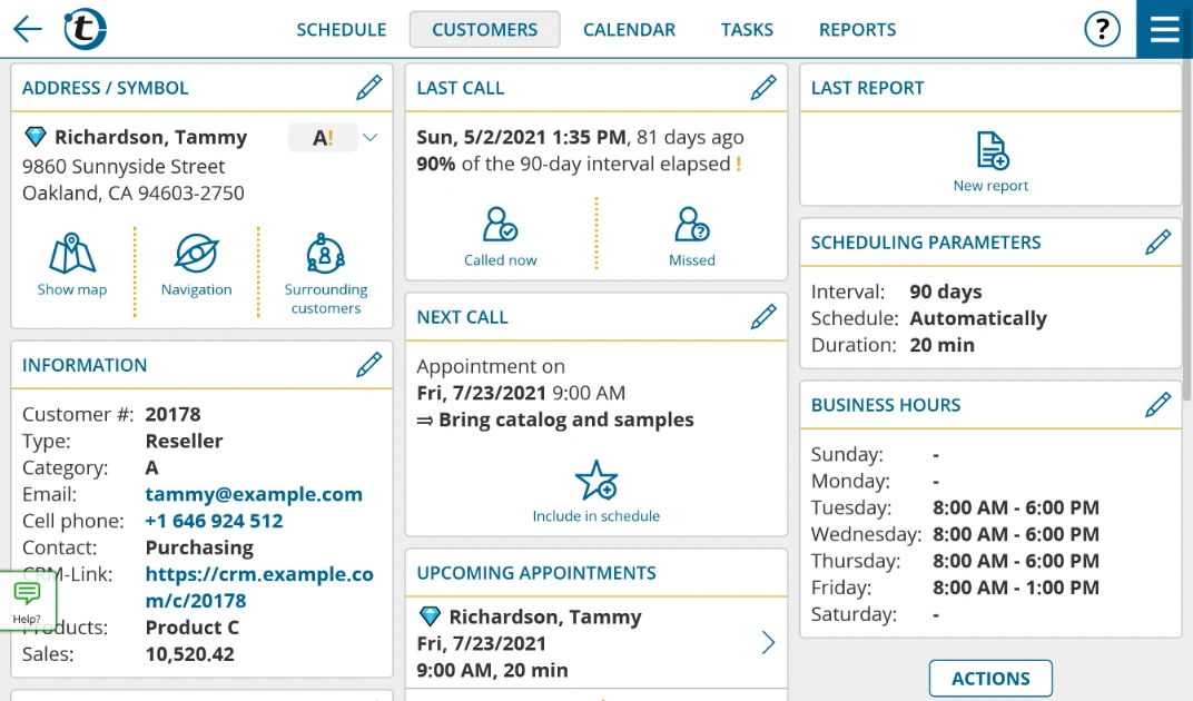 Many customers, too little time? Prioritization according to sales, potential and last call. No customer falls through the cracks.