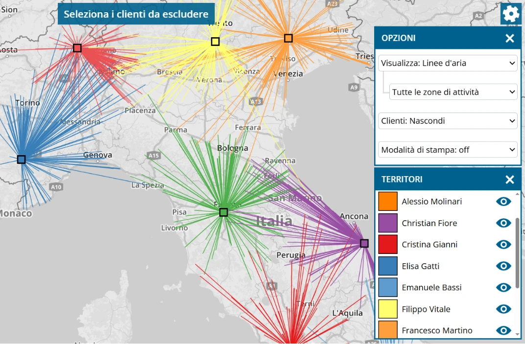 Puoi anche utilizzare l'ottimizzazione dei territori di portatour® per scoprire come coprire in modo ottimale le aree di vendita nonostante un team ridotto.
