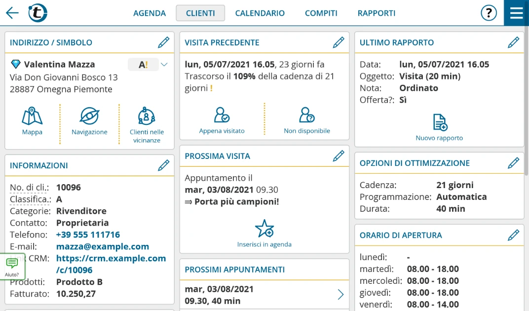 Molti clienti, poco tempo? Priorità in base al fatturato, al potenziale e all'ultima visita. Nessun cliente verrà più trascurato.
