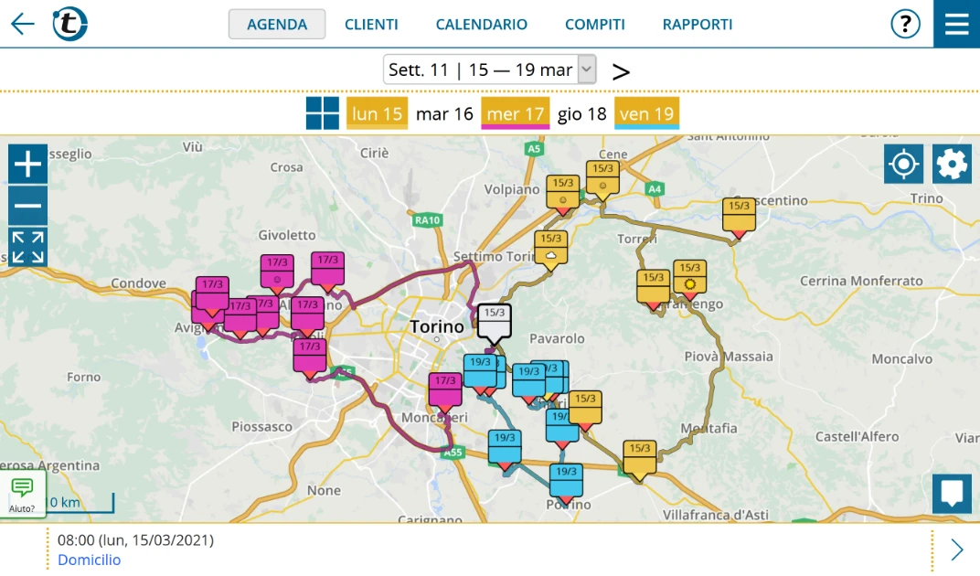 L'intelligente pianificazione dei percorsi di portatour®, che tiene conto di tutti i fattori rilevanti: posizione geografica, orari di apertura, frequenza delle visite, potenziale di fatturato o richieste di appuntamenti spontanee. In questo modo ogni chilometro diventa un investimento ed è possibile evitare deviazioni, viaggi a vuoto o clienti dimenticati.